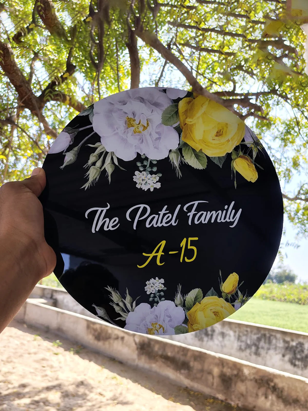 Yellow Floral Home & Office Name Plate